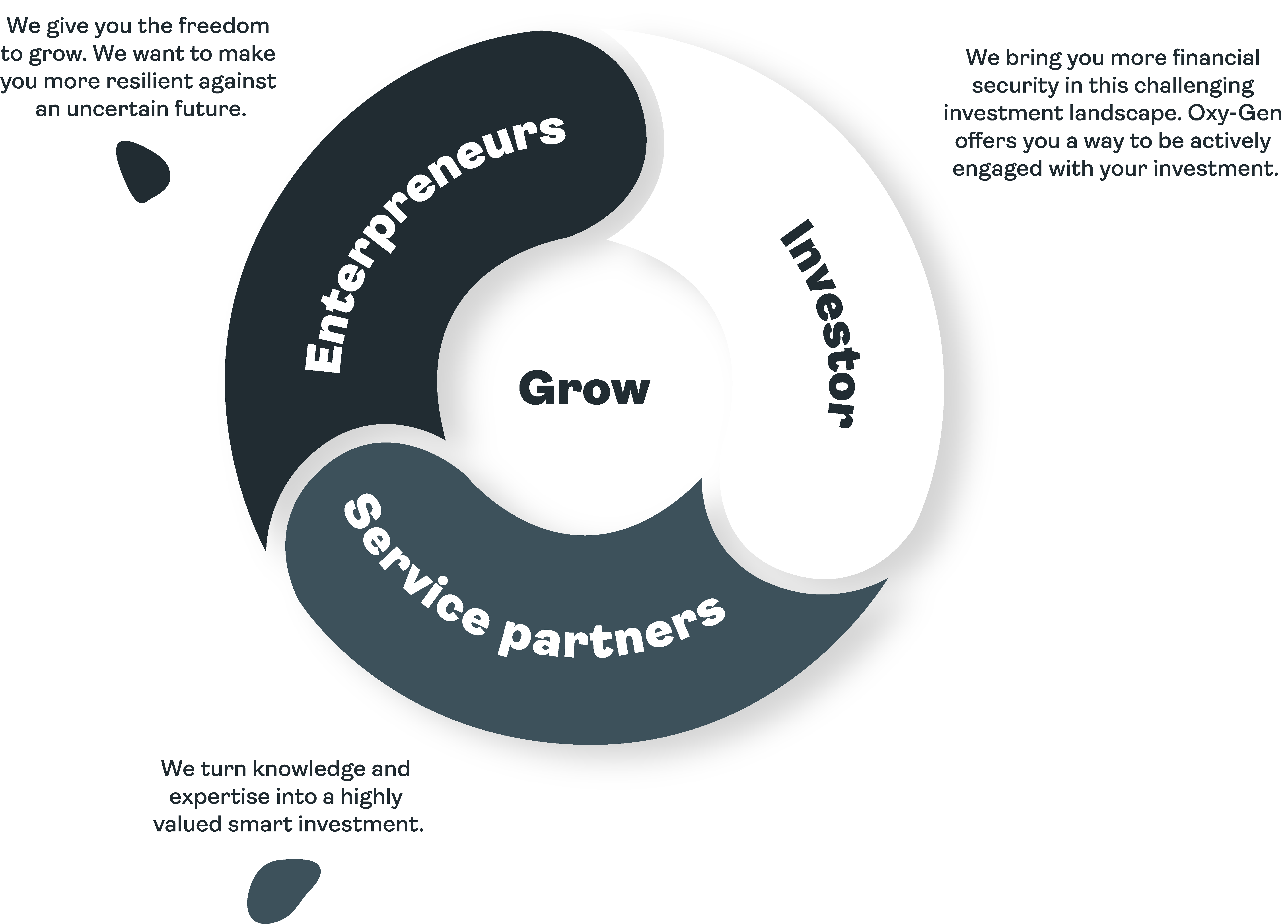 Oxy-Gen is a true and compact ecosystem, an entrepreneurial collective, but also real investment agency founded by serial entrepreneurs & investors who have been growing their own start–ups and scale-ups successfully. All with a hands-on, both feet on the ground attitude, ready to take up a shared responsibility.